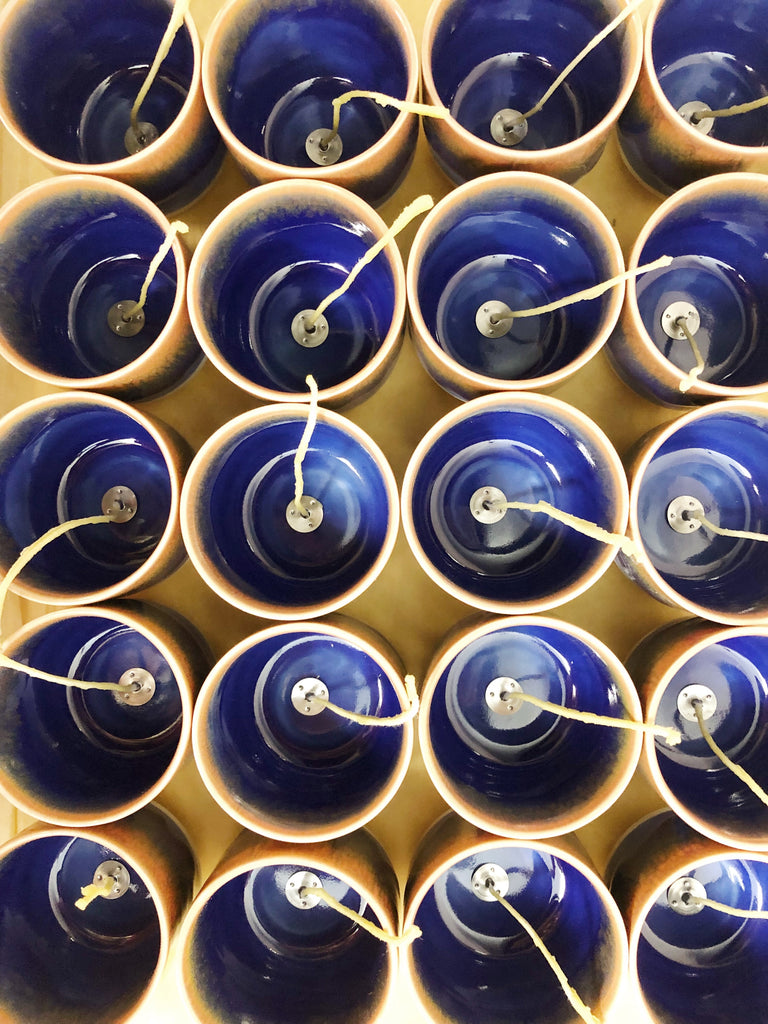 These hand-cast and hand-glazed porcelain cups come from a small ceramics studio in Denmark. No two are alike. Once the last wax has melted from your beeswax candle, these cups can be used for a quick espresso or a little evening tea. Or maybe for a small plant.